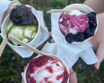 こだわりの無添加生地と共に皆さんを笑顔にする為やって参りました。出来立てのシュガーバターと自家製クリームのミニクレープご用意しております。